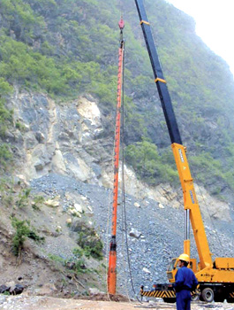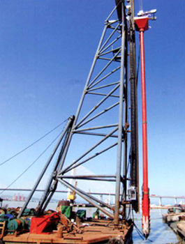 振沖器是振沖法施工中的特制機具。它產(chǎn)生水平向振動力振擠填料及周圍土體,而達(dá)到提高地基承載能力、減少沉降量、增加地基穩(wěn)定性、提高抗地震液化能力。 振沖法施工時除原地沖器外,尚需行走式起吊裝置,泵送輸水系統(tǒng),控制操作臺等。如工程單位缺乏起重機,本廠還供應(yīng)振沖器施工樁架,樁架有單邊滾管立柱式、液壓步履式、簡易履帶式等。